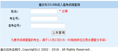 點(diǎn)擊鏈接:重慶成人高考成績(jī)查詢?nèi)肟?/strong>