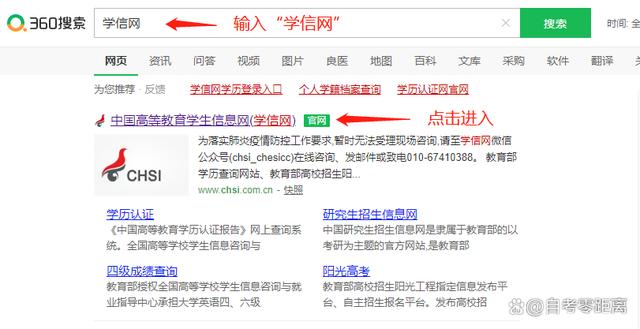 “學信網”,點擊進入學信網官方網站。