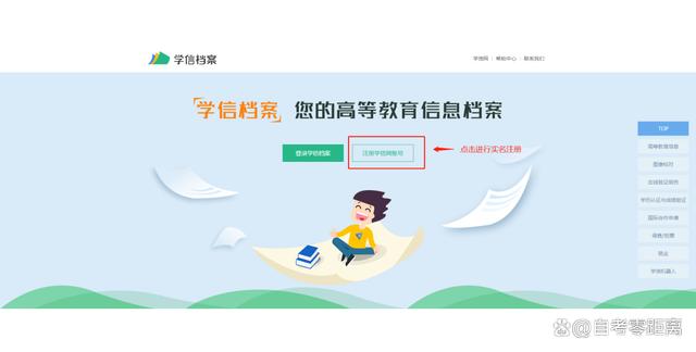 進入學信網后,點擊首頁上方“學信檔案”,進入學信檔案登錄頁面。